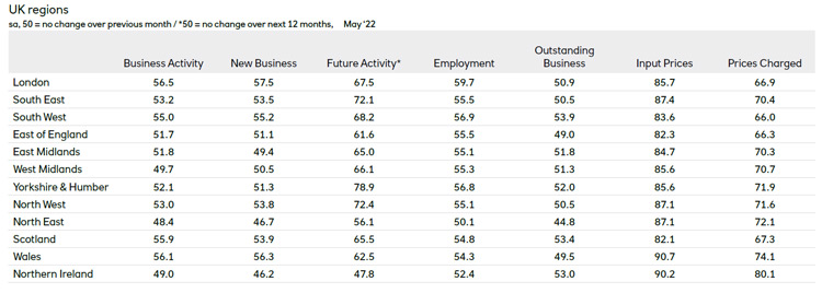 “Economic forecasts at a global and UK level continue to be downgraded on an almost monthly basis. The latest survey of Northern Ireland’s private sector saw the deterioration in business conditions accelerate in May. Local firms reported a fall in business activity for the first time in 14 months with the significant declines in retail and construction outweighing continued growth within the manufacturing and services sectors. Inflationary pressures and heightened uncertainty are hitting demand and delaying investment. Input cost inflation in May fell just shy of October’s record rate but local firms increased their prices at the fastest pace in the survey’s history. The cost-of-living crisis is making its presence felt, particularly on retail, with both sales and new orders slumping in May. Construction remains mired in an order book recession with last month’s steep decline marking the eleventh successive month of contraction.